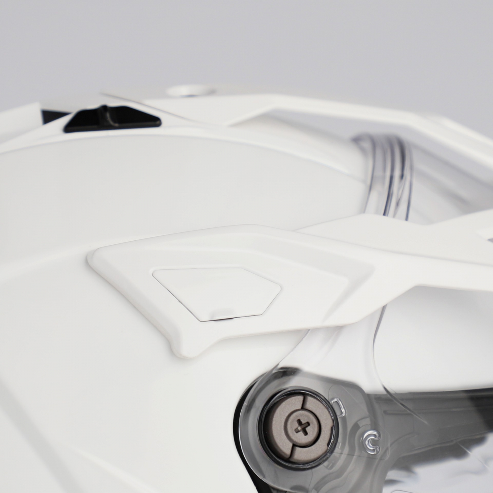 Carcasă exterioară dublă din fibră de sticlă Carcasă interioară dublă OMOLOGARE ECE/ONU 22-06 Parasolar integrat acționat de un glisor Vizor transparent cu sistem de eliberare rapidă Închidere cu curele cu inel dublu Proiectat pentru instalarea accesoriului PINLOCK 70 Max Vision.