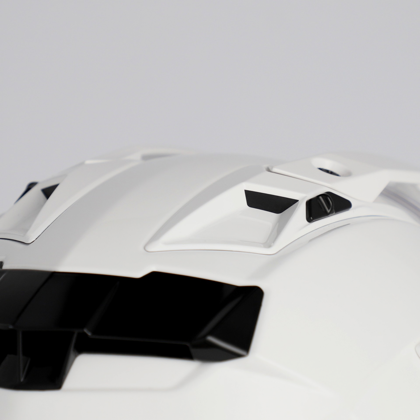 Ideală pentru cei cărora le place să abordeze teren accidentat și drumeții lungi, această cască a fost creată pentru a asigura performanțe optime chiar și la viteze mari, menținând în același timp un confort ridicat. Carcasa este realizată din fibră, care oferă o rezistență excepțională, cu o greutate redusă de 1450 g ± 50 g în dimensiunea „M”. Datorită prizelor de aer frontale și superioare, aerul proaspăt este canalizat cu precizie pentru a oferi o ventilație eficientă, asigurând răcoare chiar și în zilele cele mai călduroase. Datorită și ieșirii din spate care permite evacuarea rapidă a aerului cald, menținând constant o temperatură internă optimă. Designul aerodinamic al căștii a fost dezvoltat pentru a minimiza rezistența aerului, contribuind la o călătorie mai lină și mai stabilă chiar și la viteze mari. Un pas uriaș înainte a fost făcut cu vârful aerodinamic inovator, fixat în 4 puncte în loc de tradiționalul 3, care asigură rezistență și stabilitate maximă, indiferent de circumstanțe.