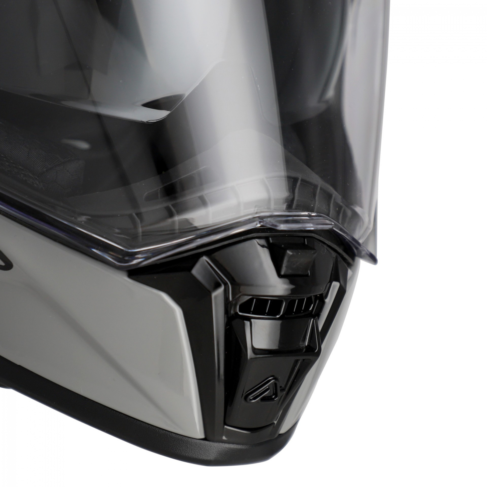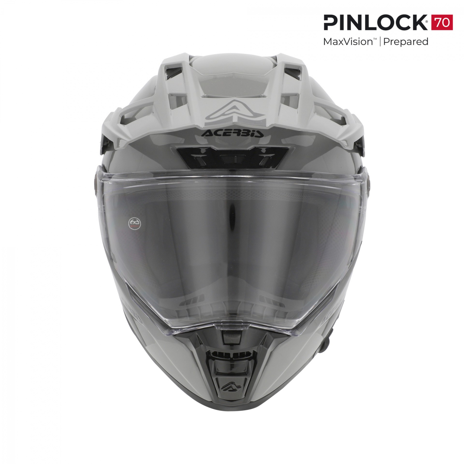 Carcasă exterioară dublă din fibră de sticlă Carcasă interioară dublă OMOLOGARE ECE/ONU 22-06 Parasolar integrat acționat de un glisor Vizor transparent cu sistem de eliberare rapidă Închidere cu curele cu inel dublu Proiectat pentru instalarea accesoriului PINLOCK 70 Max Vision.